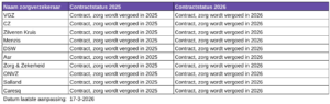 Overzicht van zorgverzekeraars (inclusief de labels) met wie Yulius voor 2025 een contract heeft afgesloten.